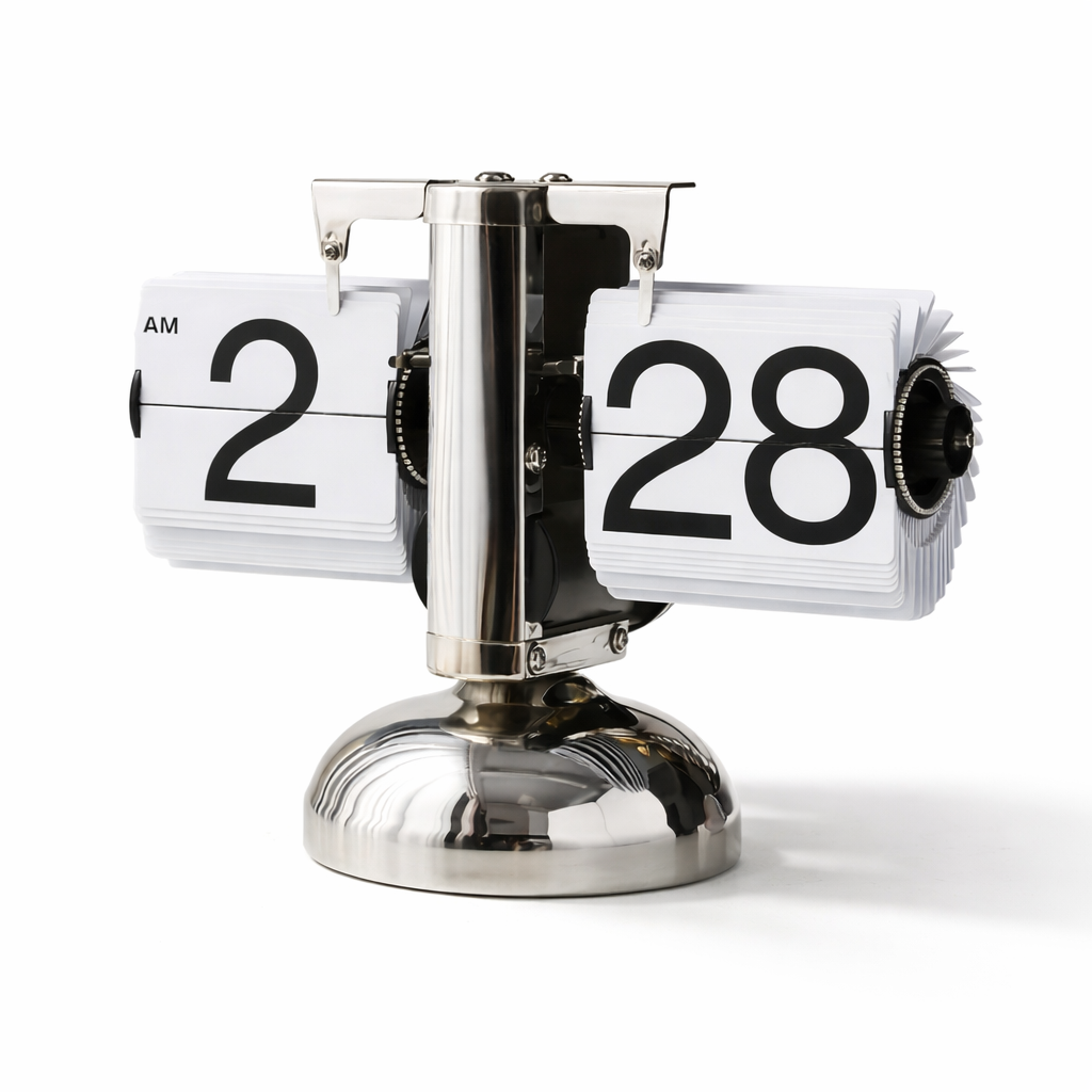 Porta un tocco di nostalgia nella tua casa con il nostro orologio retrò! Il caratteristico meccanismo di ribaltamento e lo stile minimalista, lo rende un pezzo di arredo perfetto per un ufficio o per la tua casa. Posizionato su una scrivania, su uno scaffale o a parete, unisce praticità ad uno stile retrò che non passano mai di moda.