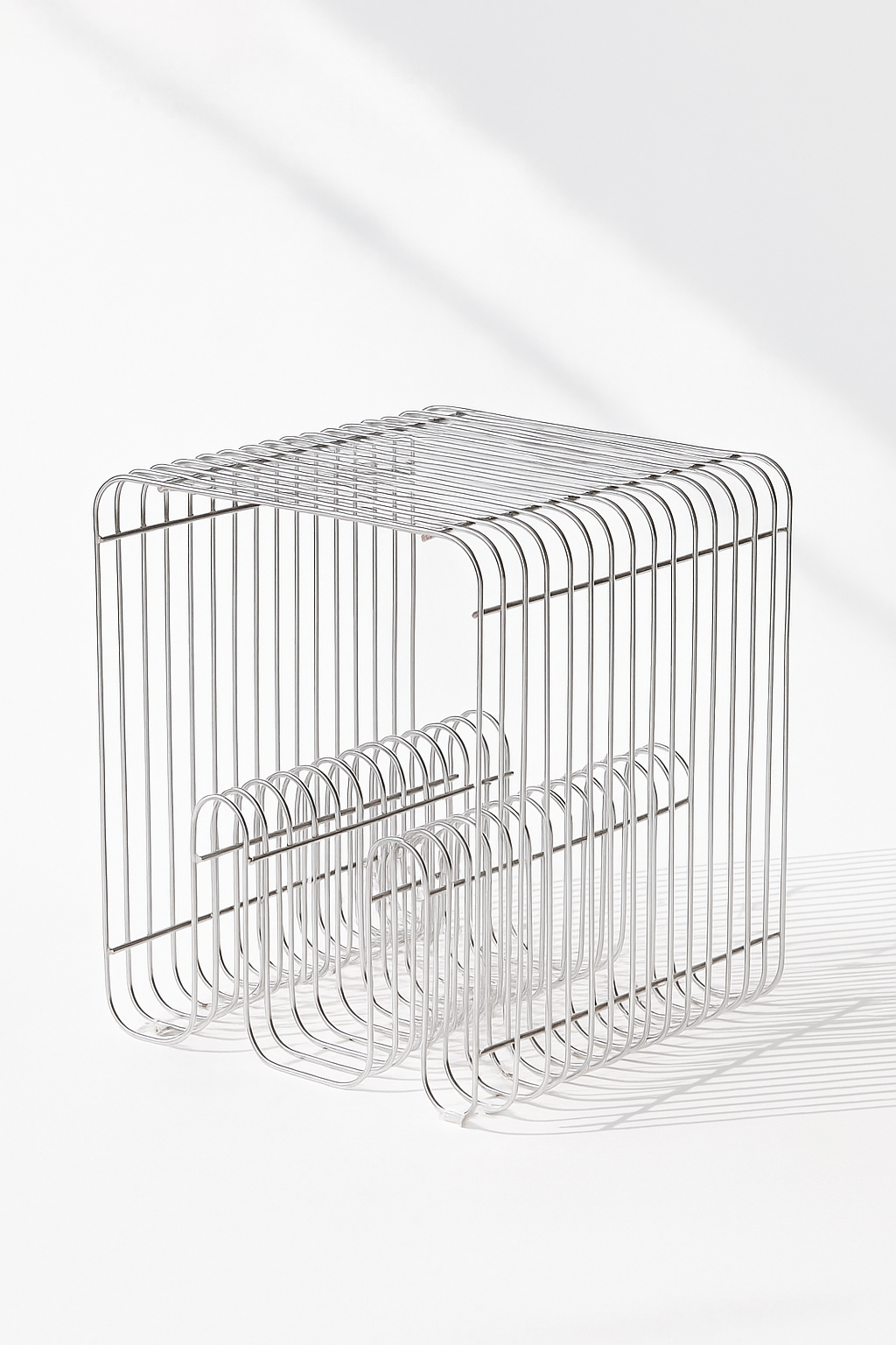Un tavolino leggero e contemporaneo, realizzato interamente in metallo traforato.